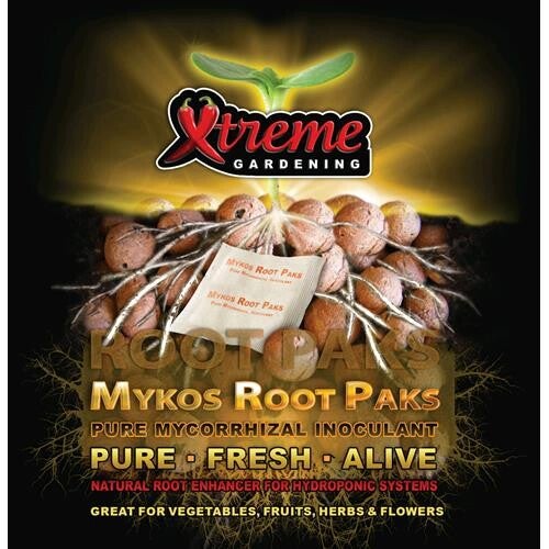 MYKOS ROOT PAKS sono il metodo multiuso per applicare le micorrize in terra o medium idroponici. Ogni confezione contiene 10 grammi di inoculante micorrizico puro. I microbi all'interno di ciascun pacchetto apportano benefici alle piante creando una massa "spugnosa" che raccoglie e immagazzina nutrienti e acqua, aumentando l'assorbimento di entrambi. Questa singola specie di funghi micorrizici arbuscolari contiene solo Rhizophagus intraradices. MYKOS ROOT PAKS non contiene altri microbi come Trichoderma o ectomicorrize.