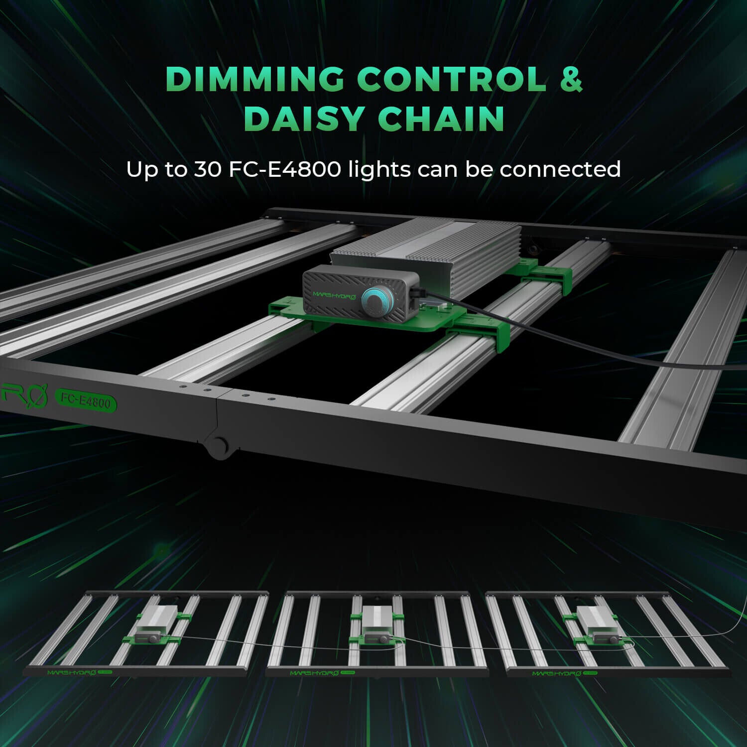 Mars Hydro FC-E4800 è una lampada per coltivazione a LED ad alte prestazioni, progettata per massimizzare i rendimenti pur essendo efficiente dal punto di vista energetico. Con un'efficienza di 2,8 µmol/J, offre un PPF elevato di 1344 µmol/s, che lo rende ideale per coprire uno spazio da 120x120cm a 150x150cm.