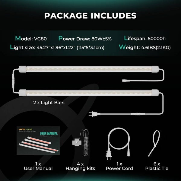 Il VG80 è un LED di alta qualità, che forniscono prestazioni eccellenti con un focus specifico su verdure, piantine e cloni. È una lampada per impianti a basso DLI che funziona con soli 80 watt, producendo un calore minimo. Questa caratteristica consente un posizionamento più vicino alle rastrelliere per piante, garantendo un'illuminazione efficace senza danneggiare le piante.