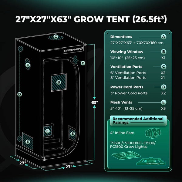 Mars Hydro indoor grow tent utilizza 1680D Oxford e cerniere pesanti per prevenire perdite di luce.