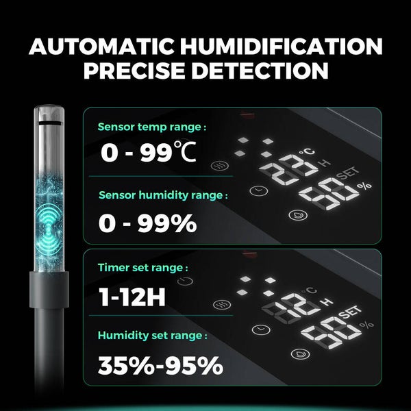 Prodotto include: Umidificatore 5L x1, telecomando x1, sonda del sensore cablato x1, tubo corto flessibile x2, tubo lungo flessibile x1, Velcroes x3, ugello a 3 vie x1, kit utensile x1